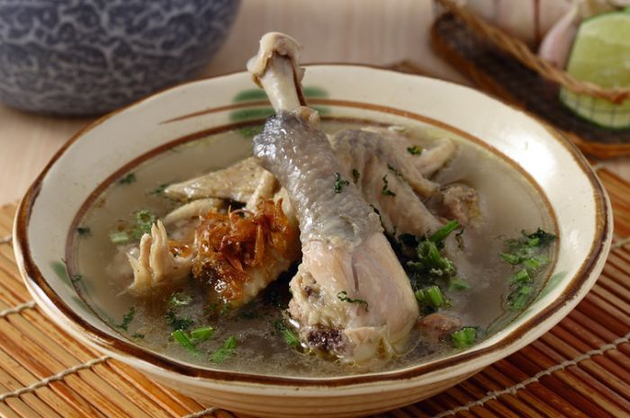 Biarkan hingga daging ayam empuk. Jika Sop Ayam lainnya didominasi oleh sayur seperti wortel buncis kentang makaroni dan potongan ayam kecil-kecil maka Sop Ayam Pak Min Klaten ini berisi ayam lengkap dengan tulangnya dan tidak ada sayur hanya ada seledri beserta kuah yang sangat gurih. 1 batang daun bawang perai iris halus 12 sendok teh kaldu ayam bubukkaldu jamur.