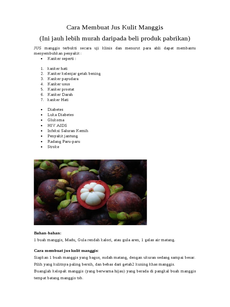 Untuk pencegahan konsumsilah manggis setiap hari. Untuk membuat resep minuman jus ini tahapannya adalah sebagai berikut. Fakta dibalik Manfaat Kulit Manggis Yang menggemparkan dunia A Publication of Resep Jus Sehat SELAYANG PANDANG Buah manggis memegang rekor sebagai Queen of all fruits atau ratunya buah-buahan.